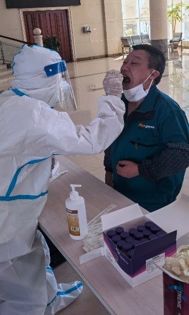 为确保此次核酸检测工作安全高效有序进行,公司疫情防控办公室按照疫情防控要求,积极做好检测点布置、人员分流安排等各项前期准备工作。上午9时30分,在公司的统一组织下,全体员工积极参与、有序排队,逐一进行了咽拭子采集工作。检测过程中,员工严格按照疫情防控要求,全程佩戴口罩,保持安全间隔距离依次进行采样。员工采集完毕后有序离场,避免人员聚集。截至上午11点,公司参与核酸检测员工300人。本次核酸检测工作整体迅速、有序、高效。