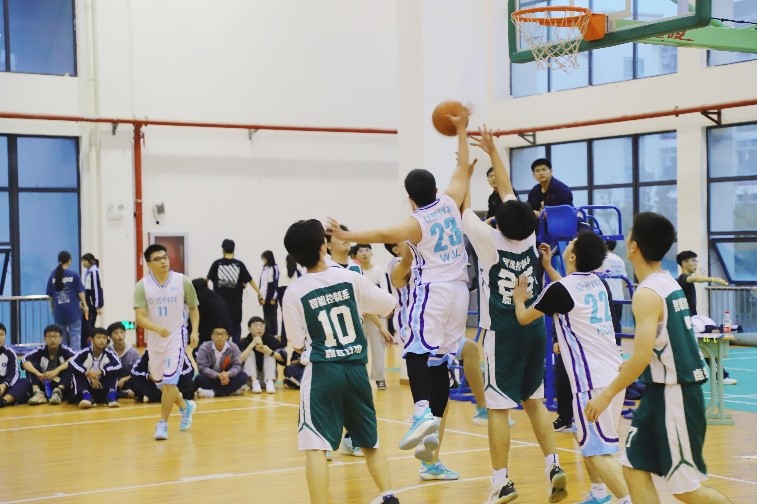 在一个多小时的比赛过程中,双方球员秉承“友谊第一,比赛第二”的原则,赛出了水平、赛出了风格、增进了友谊。比赛场上,双方球员可谓是棋逢对手、角逐激烈。智能制造系球员配合默契,技术熟练;776net必赢官网科技的球员们也毫不畏惧,勇往直前。双方球员们个个发挥出色,关键时刻表现十分顽强,三分球、篮板球快攻、声东击西妙传等出色球技,赢得场外观赛人员阵阵喝彩。激烈的比赛中也有温情的瞬间,当有球员跌倒后,旁边的队友会第一时间上前关心,扶起来后一个简单的加油,继续投入到对抗中,比赛就在这样激烈、友好的氛围中进行着。